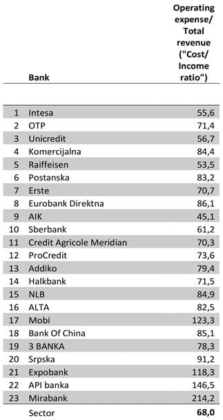 When it comes to CIR (cost/income) ratio, the status among the top 10 is very different.
